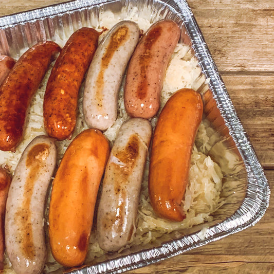 Assorted German style sausages served over a bed of hot sauerkraut with mustards.Add to Quote QuantitySM (serves 10)