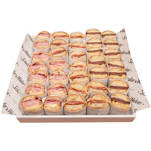 Selection of German butcher shop-inspired cold cut sandwiches on Balthazar rye served with Schaller & Weber mustards, pickles & mayonnaise.Add to Quote QuantitySM (12 half-sandwiches)