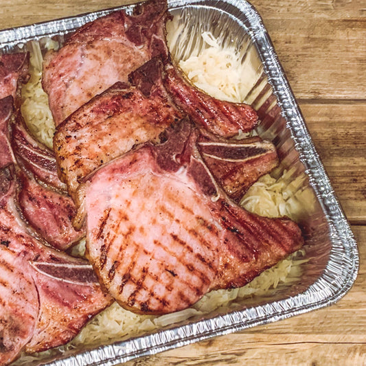 Cured and smoked pork chops served over a bed of hot sauerkraut.Add to Quote QuantitySM (serves 6)