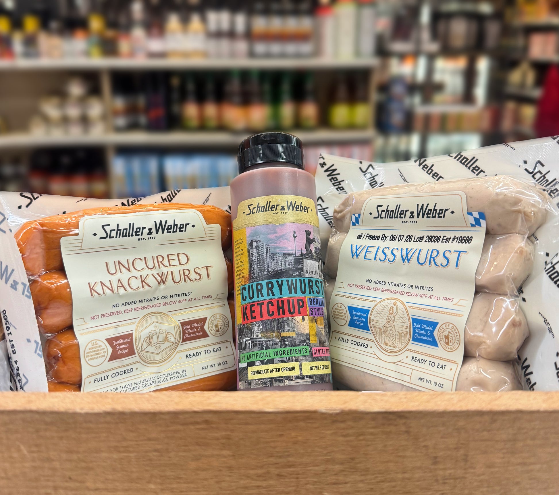 Recreate Schaller’s Stube at home with our Currywurst combo pack featuring our new Berlin Style Currywurst Ketchup. The sweet heat on this all natural, gluten free ketchup will have you tapping the bottle dry. You already know and love our Bavarian Style Sweet and Spicy Mustard and Düsseldorf Horseradish Mustard, so get to know this one too on top of Schaller & Weber wursts: Knacks and Weiss.
