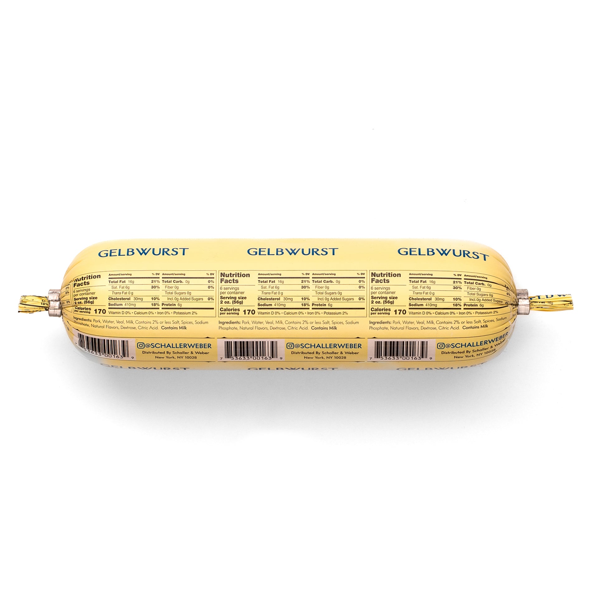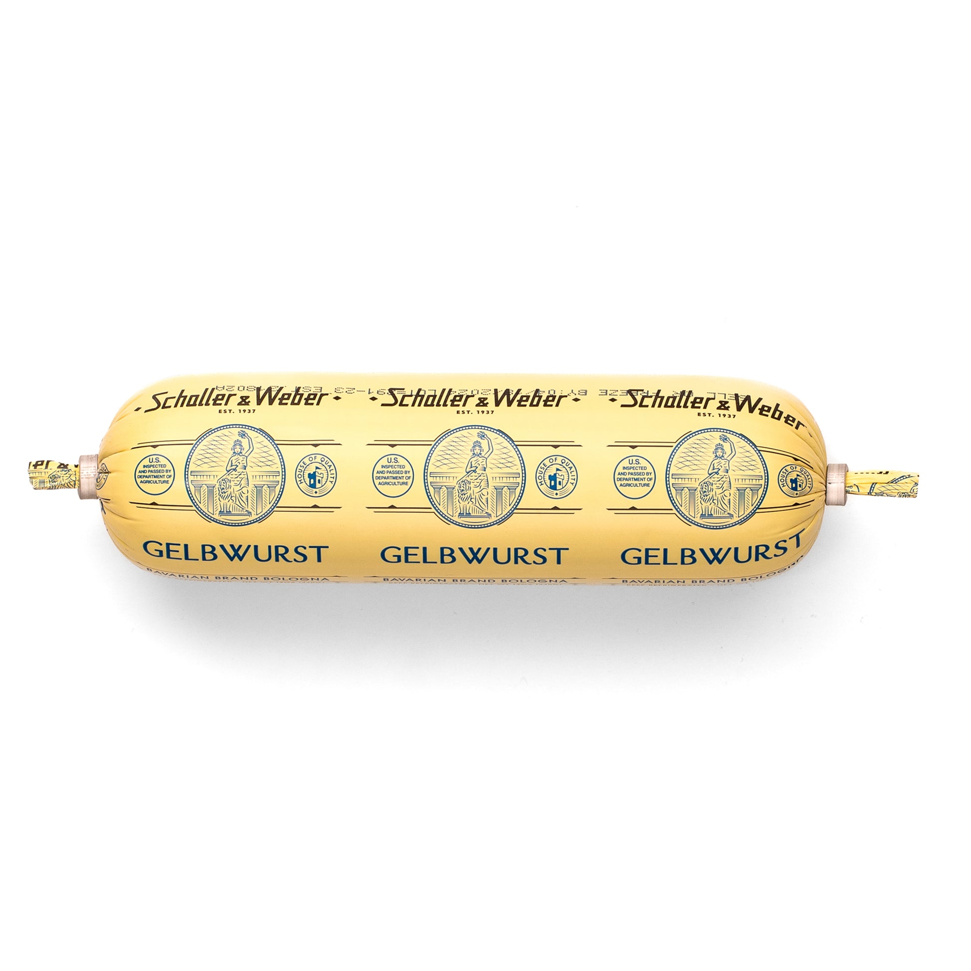 Gelbwurst originated in the Black Forest region of Bavaria. This original sausage was easily identifiable by its pale yellow rind and was made of a pork and veal mix and spiced with nutmeg, white pepper and ginger.